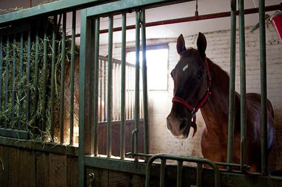 A HOME IN THE CITY: Arnie the carriage horse stands in his 10-foot-by-10-foot home at the Clinton Park Stable on West 52nd Street and 11th Avenue. He lives here part-time, spending about five months of the year on a farm in Pennsylvania.