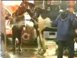 “A spooked horse bolted on a midtown street ..., ejecting the driver of the carriage..., then galloping straight into a station wagon...” at Ninth Avenue and 50 St. Three people were hospitalized, one critically. “The horse was pinned under the car...” and was later euthanized. Daily News, Jan. 3, 2006, p. 6 (It took the police and fire dept. ½ hour to extricate the horse from under the car.) Photo above.