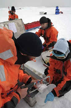 Sea-Ice biologists from the Institute of Polar Ecology at the University