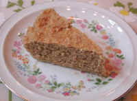 Uncover the baking dish and run a flat table knife around the edges to make sure that the corn bread is not sticking to the sides of the baking dish. (To enlarge the photo of the Banana Corn Bread, click on the photo or link)