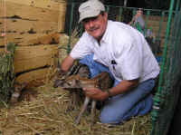 I have 6 adult deer, 4 females and 2 young bucks (with 2 newborn fawns) in a 10 acre, high fence enclosure. We keep them there because some of them were rescued as fawns when they were abandoned, and the others were found badly injured or trapped in a wire fence. I have been taking care of these animals myself and they have total confidence in me.