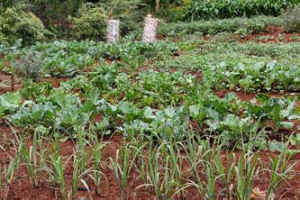 Each of these groups of women takes care of up to 100 orphans ages 2-10. Together they grow predominantly green vegetables.
