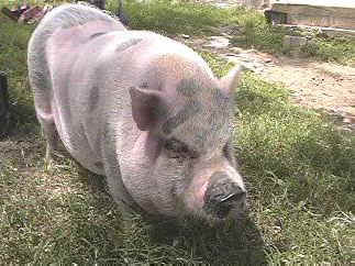 Winnie Pearl: Winnie was among 3 pigs that were rescued from a former "Robinson�s Racing Pigs" vendor, who decided to keep them, unlike the majority of pigs used for this "show" who end up at the slaughterhouse. This was Winnie, Oreo and Willy�s first stroke of good fortune. When their human father died, their luck had run out. The man�s family was afraid of the pigs and was ready to give them to someone to be butchered when we called to inquire about their welfare. Immediately, we went to get all three pigs.