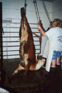 slaughterhouse, he or she has been shot in the head and is being hoisted up