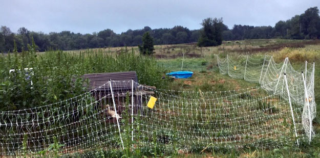 kept in a couple of crummy-looking sheds at night and let outside in a small