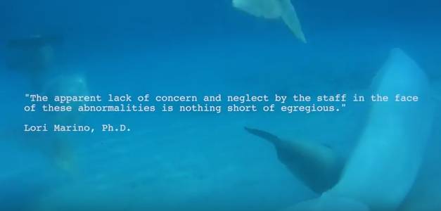 The investigation uncovered disturbing inadequacies in the care of the whales, seen in this video..