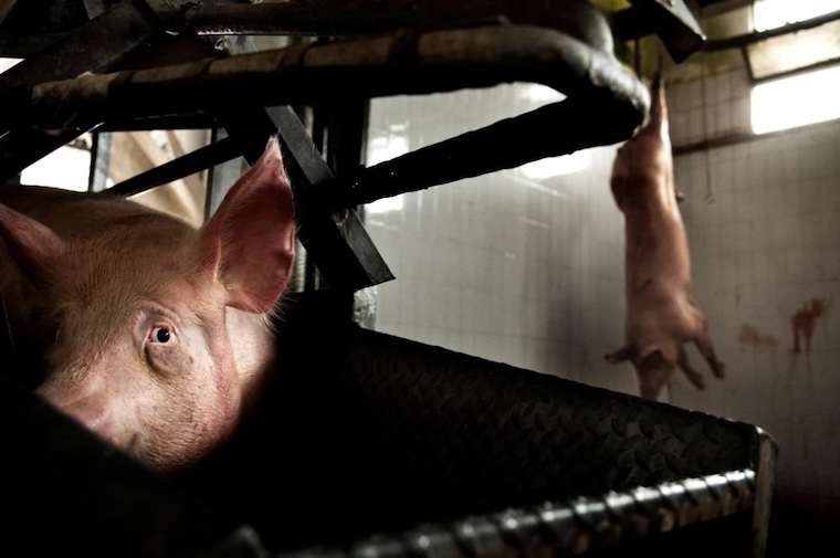 Because I feel not only terror and revulsion towards a murder committed upon a human being, but also towards those committed thousands of times upon animals, in one single week and in one single abattoir. Being human, doesn’t that signify saying no and refusing to be a silent partner in murder on a grand scale, for a piece of meat? Strange new world. It is possible that the tiny calves inside their mothers’ torn uteruses, dead even before they were born, had the best deal of all.